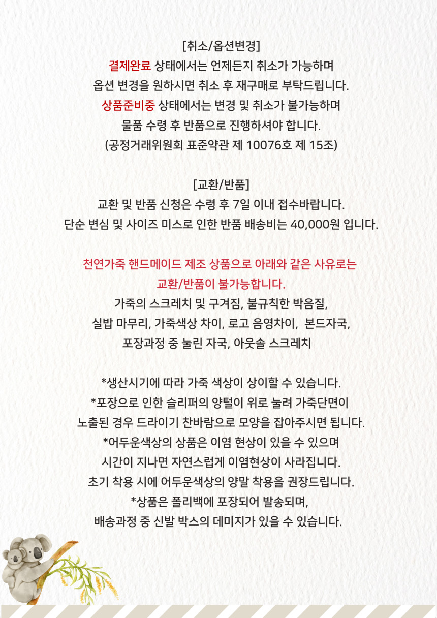 교환/반품을 원하시는 경우, 상품 상세페이지에 안내된 반품 요금과 판매자의 정책을 꼭 확인 후 구매해주세요.