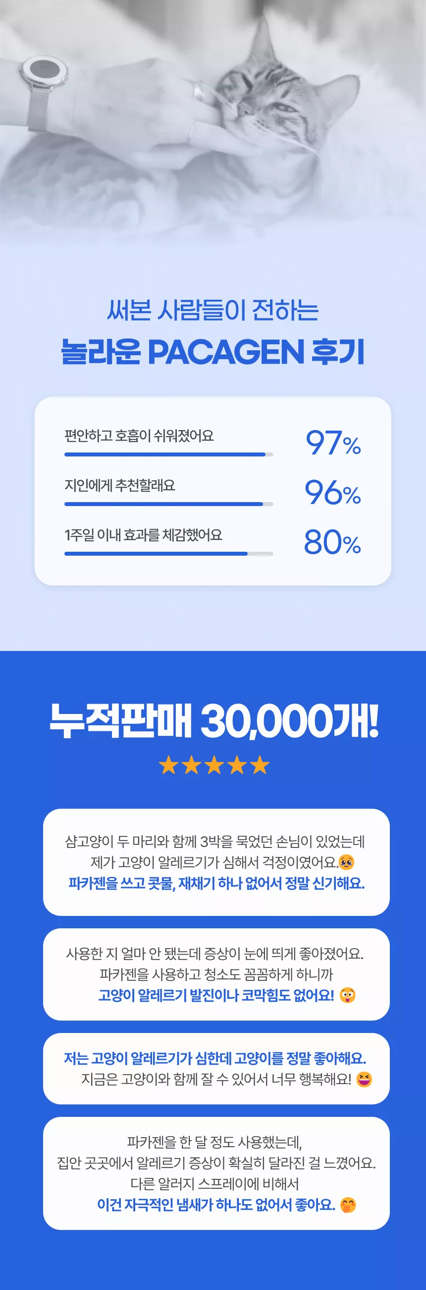 대단한 품목025. 09. 23스타터 팩(중화 분말 + 안정화 용액 + 스프레이 병) 선택안함남편이 알레르기가 심해서 고민하다가 고양이 스프레이를 샀어요. 가격은 비싼데 효과가 없다면 어쩌나 부담은 있었지만 며칠 쓰고 나니 아침마다 알레르기 반응 없이 상쾌하게 일어나더라고요! 진짜 큰 변화였어요. 앞으로도 계속 사용할 생각입니다 👍...