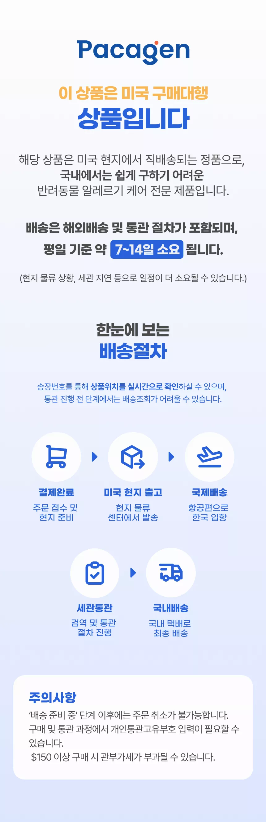해외 배송 특성상 통관비용 및 왕복 국제 배송료가 발생할 수 있습니다.