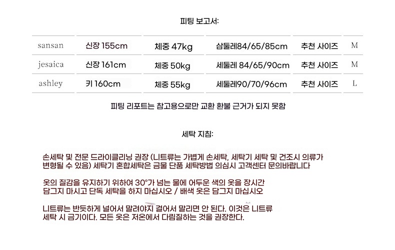 세탁방법 및 취급시 주의사항 | 상품상세 참조 |