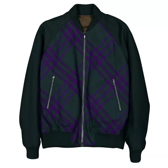 Checked Reversible Bomber Jacket With Zipper