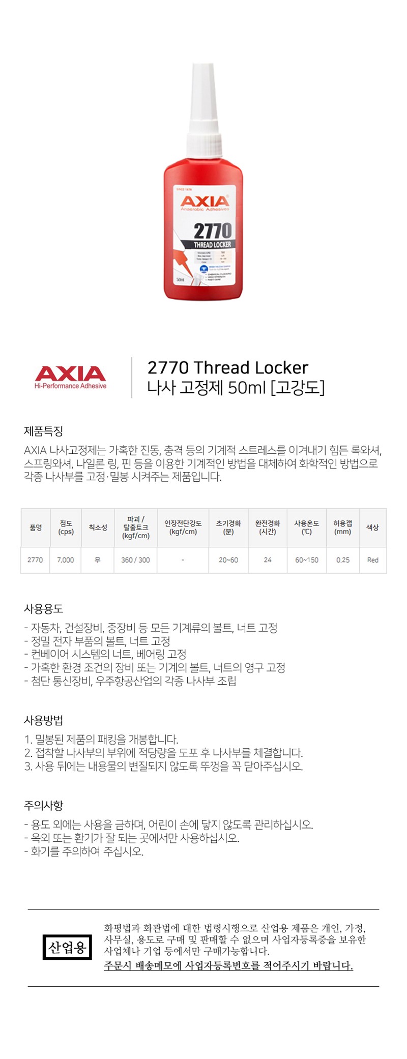 | 상품정보제공고시 | 품명: 엑시아 나사 고정제 2770 50 ML 모델명: TS14638859 제조자(수입자): 엑시아 제조국: 대한민국 A/S 책임자와 전화번호: 상세페이지 참조 |