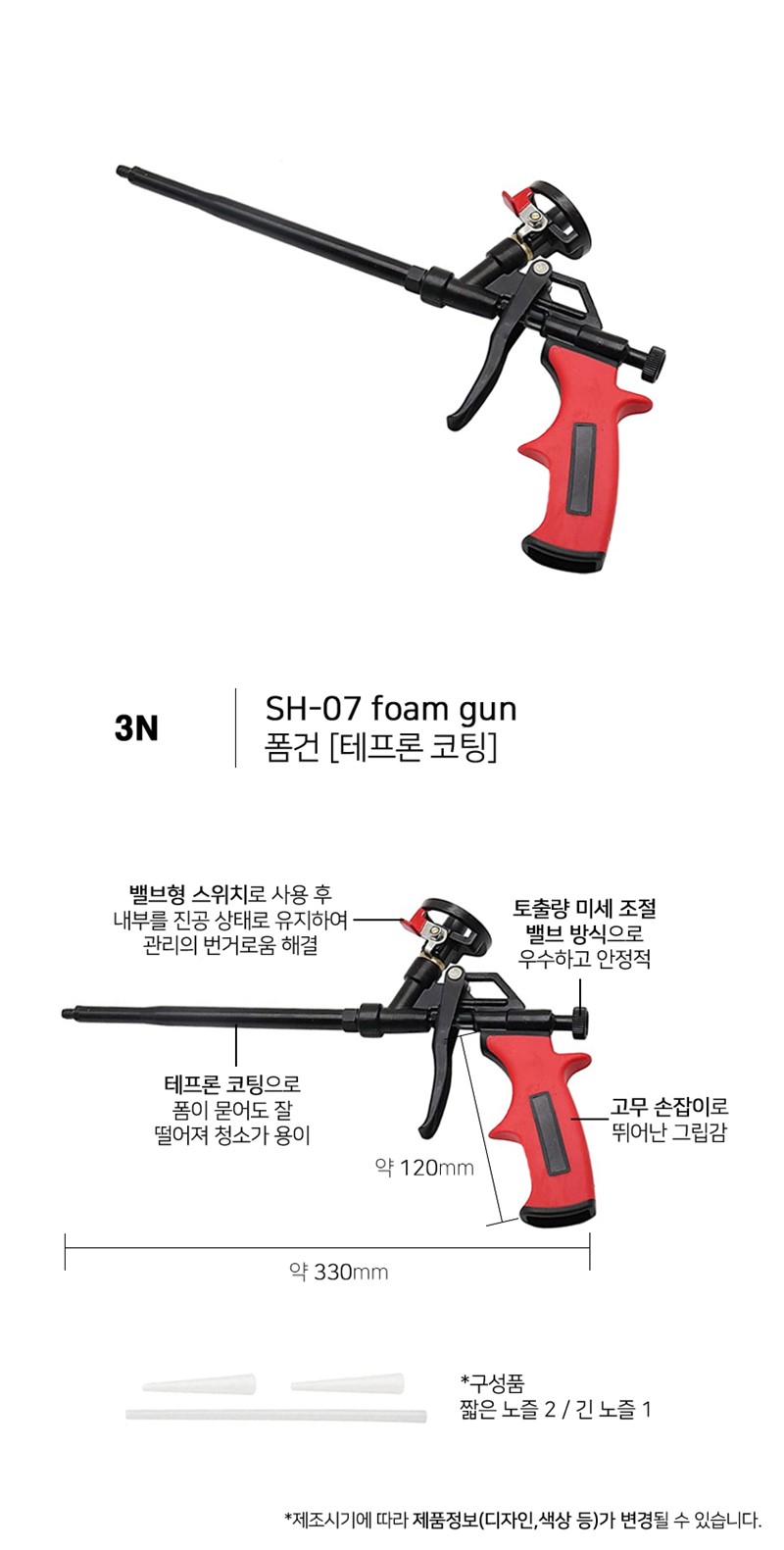 | 상품정보제공고시 | 품명: 3N 테프론 코팅 폼건 SH 07 모델명: TS14638911 제조자(수입자): 3N 제조국: 대한민국 A/S 책임자와 전화번호: 상세페이지 참조 |