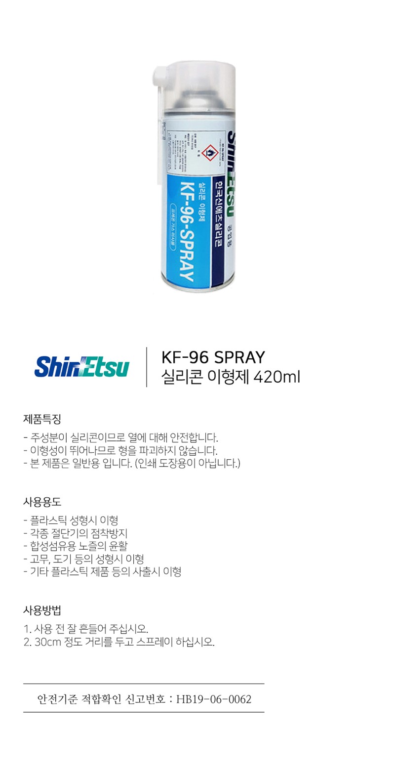 | 상품정보제공고시 | 품명: 신에츠 KF 96 실리콘 이형제 스프레이 420 ML 모델명: TS14638843 제조자(수입자): 신에츠 제조국: 대한민국 A/S 책임자와 전화번호: 상세페이지 참조 |