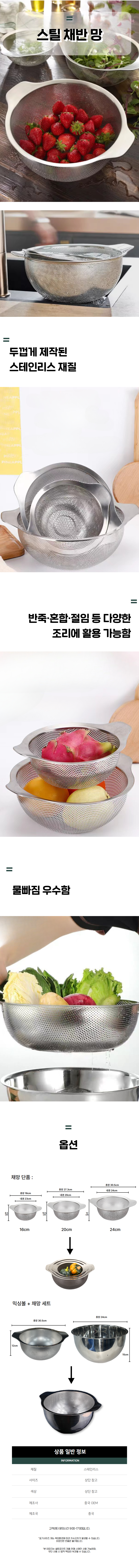 | 상품정보제공고시 | 품명: 다기능 조리도구 타공 스틸 채반 망 원형 세척 믹싱볼 모델명: TS14621463 제조자(수입자): 중국oem 제조국: 대한민국 A/S 책임자와 전화번호: 상세페이지 참조 |