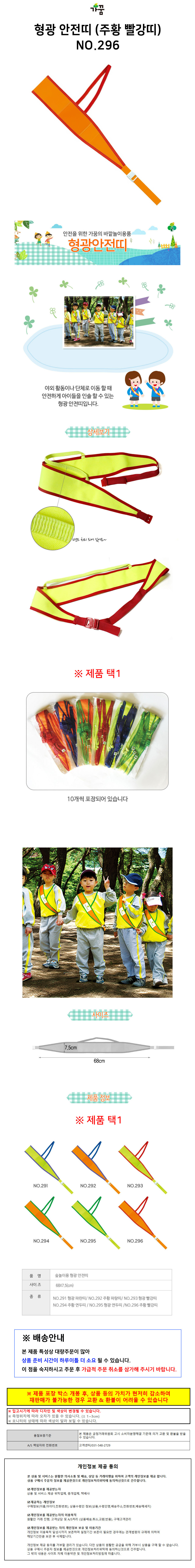 | 상품정보제공고시 | 품명: 가꿈 미아방지 형광 안전띠 (주황 빨강띠) (NO.296) 유아 안전용품 외출용품 모델명: TS14621590 제조자(수입자): 가꿈 제조국: 대한민국 A/S 책임자와 전화번호: 상세페이지 참조 |