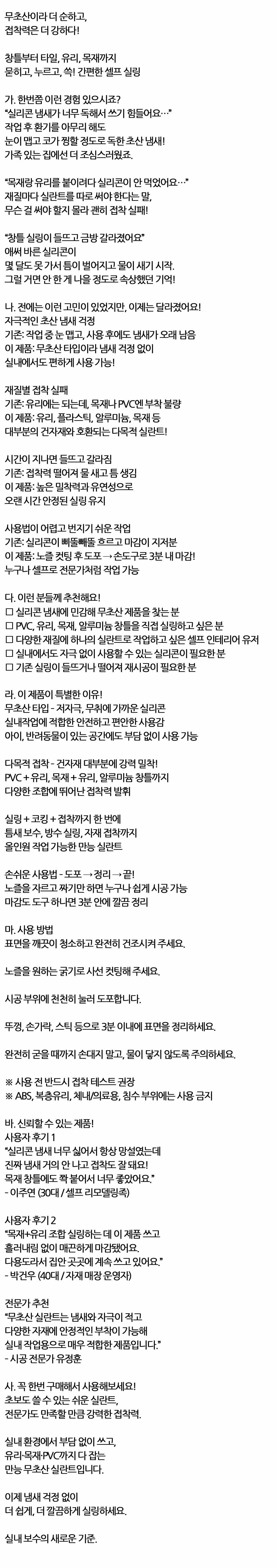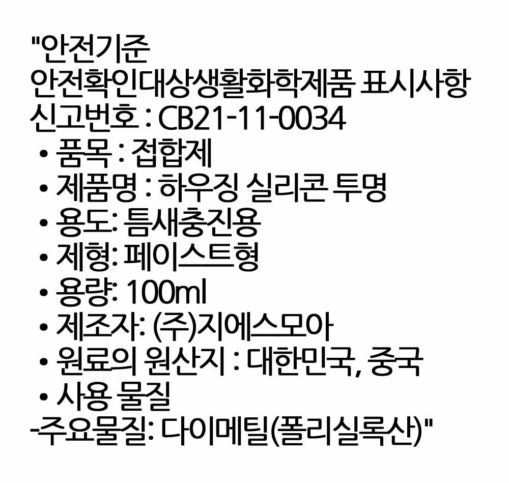 | 상품정보제공고시 | 품명: 묻히고 누르고 쓱 간편한 가정용 투명 실리콘 100ml 모델명: TS14624454 제조자(수입자): 부산홀딩스 제조국: 대한민국 A/S 책임자와 전화번호: 상세페이지 참조 |
