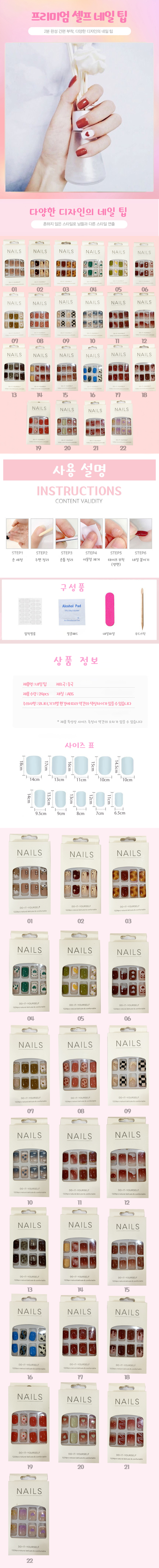 | 상품정보제공고시 | 품명: 베르 핸드메이드 네일팁 22종 간편 부착 손톱 연출용 셀프네일 모델명: TS14607687 제조자(수입자): 베르플레이스 제조국: 대한민국 A/S 책임자와 전화번호: 상세페이지 참조 |