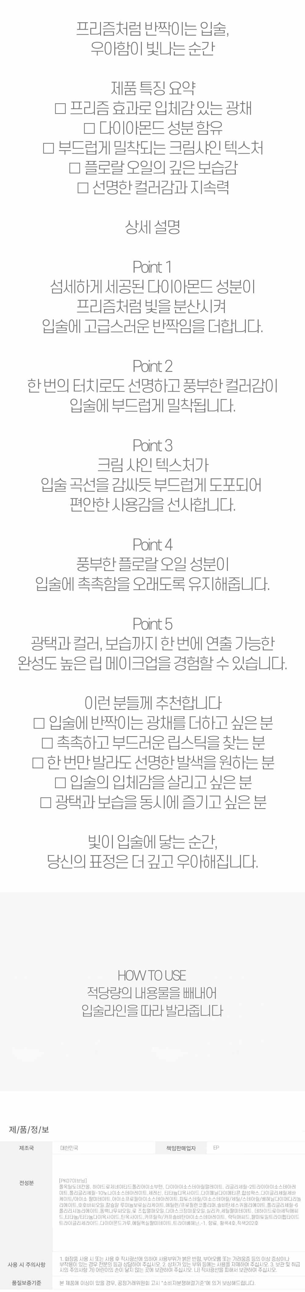 | 상품정보제공고시 | 품명: 선명한 컬러감과 지속력 프리즘 립스틱 이브닝부케 모델명: TS14597587 제조자(수입자): 아마레파리 제조국: 대한민국 A/S 책임자와 전화번호: 상세페이지 참조 |
