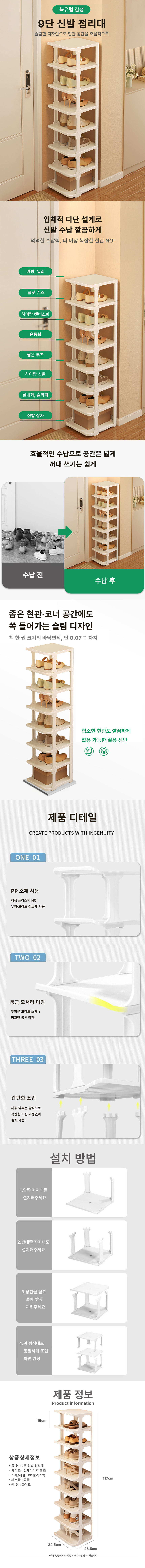 | 상품정보제공고시 | 품명: 공간활용 틈새 현관 신발 정리대 신발장9단 화이트 모델명: TS14607831 제조자(수입자): 에이치엠월드 제조국: 대한민국 A/S 책임자와 전화번호: 상세페이지 참조 |