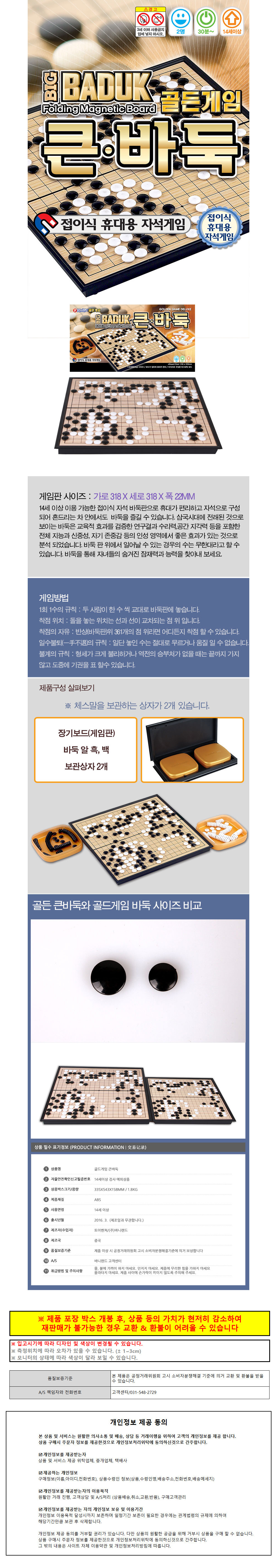| 상품정보제공고시 | 품명: 바니랜드 보드게임 골든게임 자석 큰 바둑 모델명: TS14600507 제조자(수입자): 바니랜드 제조국: 대한민국 A/S 책임자와 전화번호: 상세페이지 참조 |