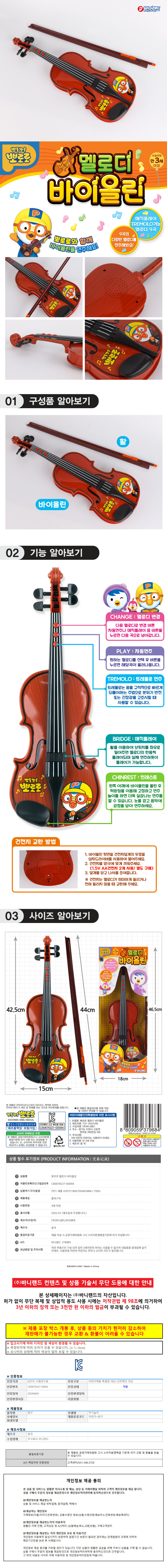 | 상품정보제공고시 | 품명: 바니랜드 악기놀이 뽀로로 멜로디 바이올린 모델명: TS14591104 제조자(수입자): 바니랜드 제조국: 대한민국 A/S 책임자와 전화번호: 상세페이지 참조 |