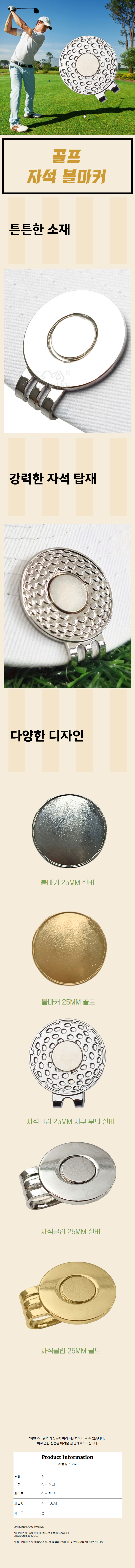 | 상품정보제공고시 | 품명: 클래식 골프 볼마커 자석 햇클립 라운딩 악세사리 모델명: TS14609210 제조자(수입자): 중국oem 제조국: 대한민국 A/S 책임자와 전화번호: 상세페이지 참조 |