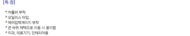| 모델명 | 소음(dB) | 회전수(RPM) | 탱그용량(L) | 에어생산량(L/min) | 출고단위 | |
