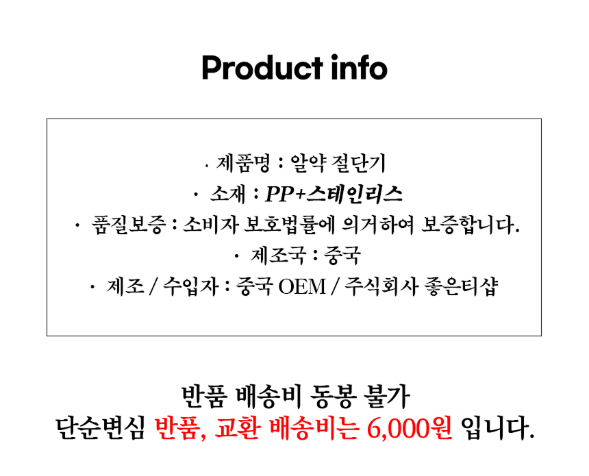 | 반품배송비 | 편도 3,000원 (최초 배송비 무료인 경우, 부과 금액 : 6,000원) | 교환배송비 | 6,000원 |