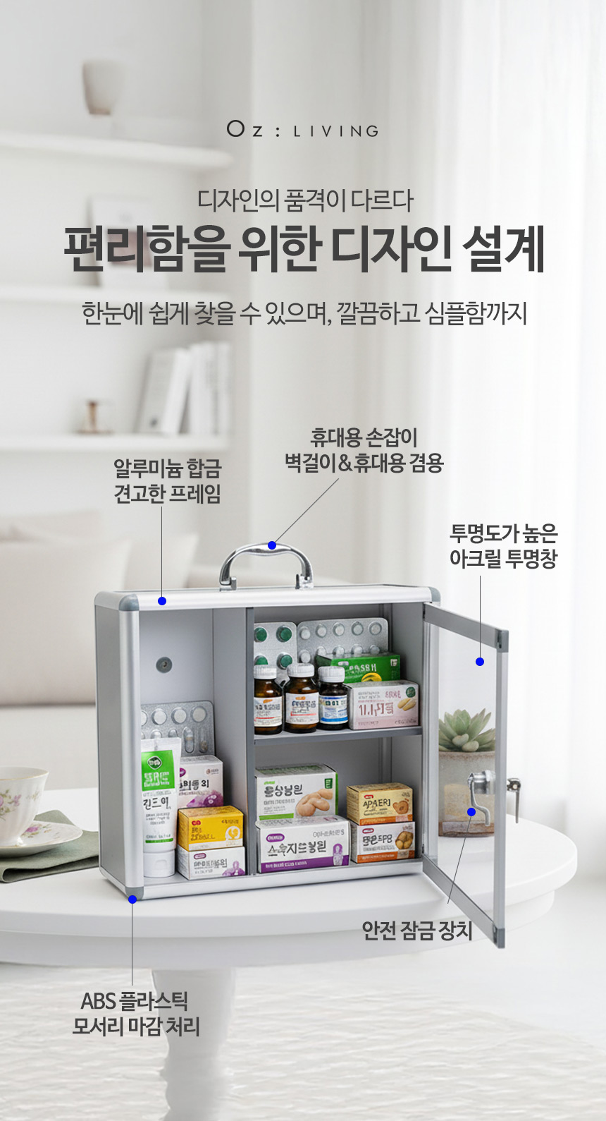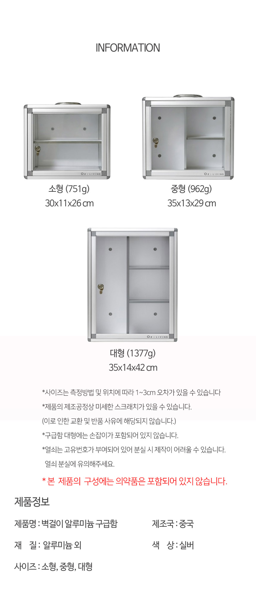 | 상품정보제공고시 | 품명: 벽걸이 알루미늄 구급함 중형 손잡이 휴대용 가정용 사무실 상비약 약보관함 구급상자 모델명: TS14546787 제조자(수입자): 아크 제조국: 대한민국 A/S 책임자와 전화번호: 상세페이지 참조 |