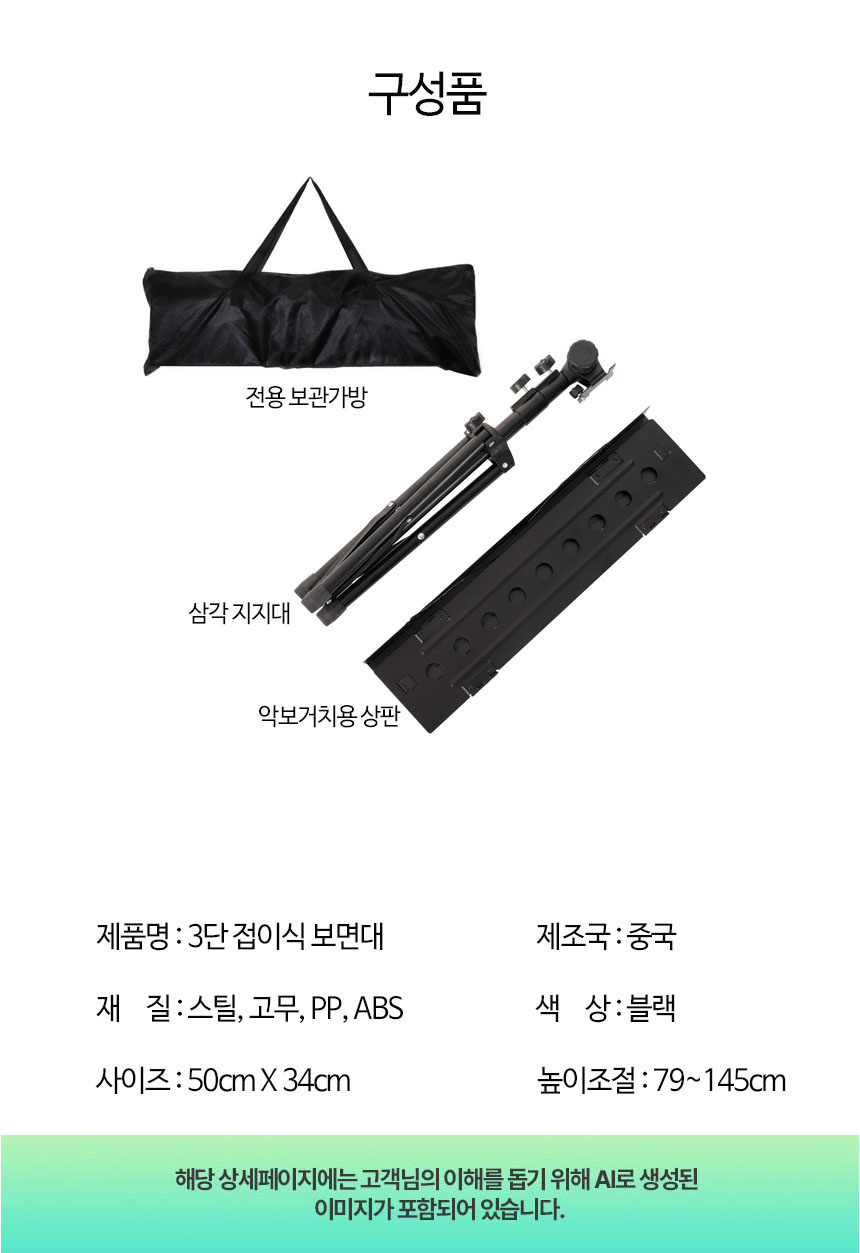 | 상품정보제공고시 | 품명: 3단 접이식 보면대 악보 거치대 스탠드 공연 연주회 버스킹 악보 보면대 모델명: TS14558895 제조자(수입자): 아크 제조국: 대한민국 A/S 책임자와 전화번호: 상세페이지 참조 |