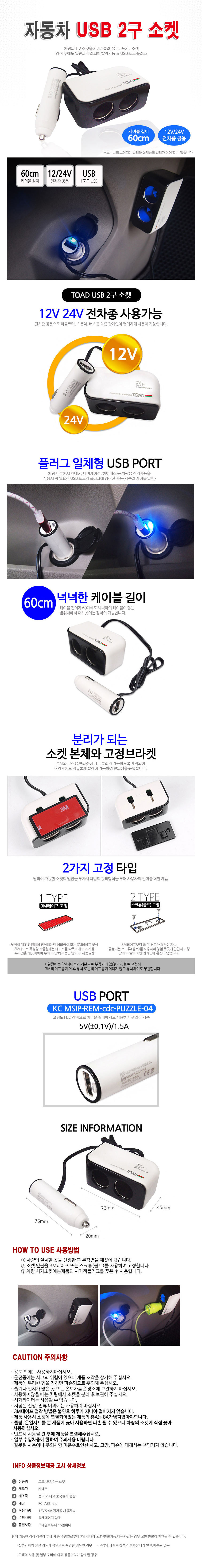 | 상품정보제공고시 | 품명: 자동차 차량용 토드 USB 2구 소켓 모델명: TS13835287 제조자(수입자): 카데코 제조국: 대한민국 A/S 책임자와 전화번호: 상세페이지 참조 |