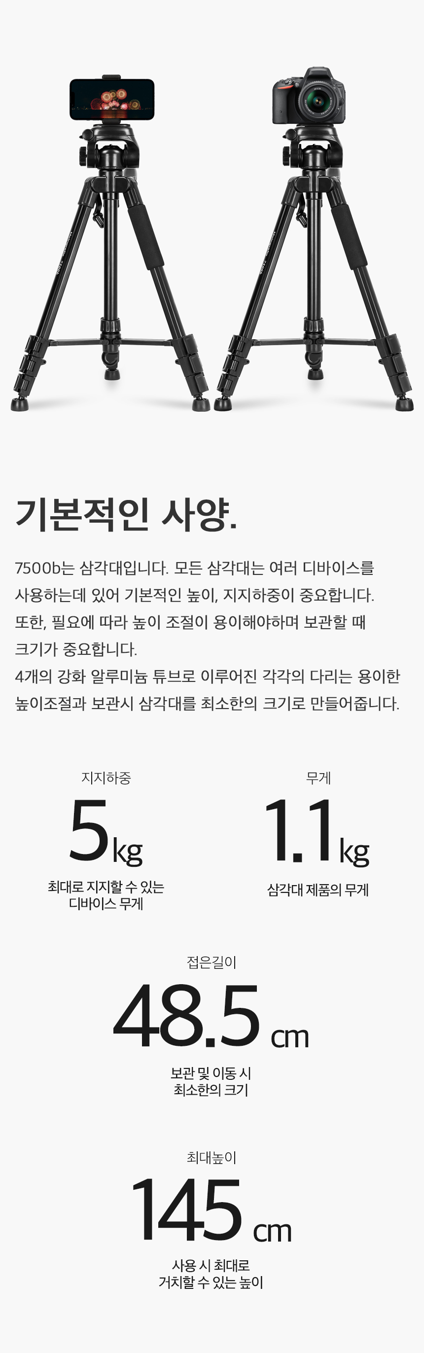 | 상품정보제공고시 | 품명: 스마트폰 카메라 7500B 휴대용 촬영 삼각대 여행용 브이로그 모델명: TS14544173 제조자(수입자): SMJ 제조국: 대한민국 A/S 책임자와 전화번호: 상세페이지 참조 |