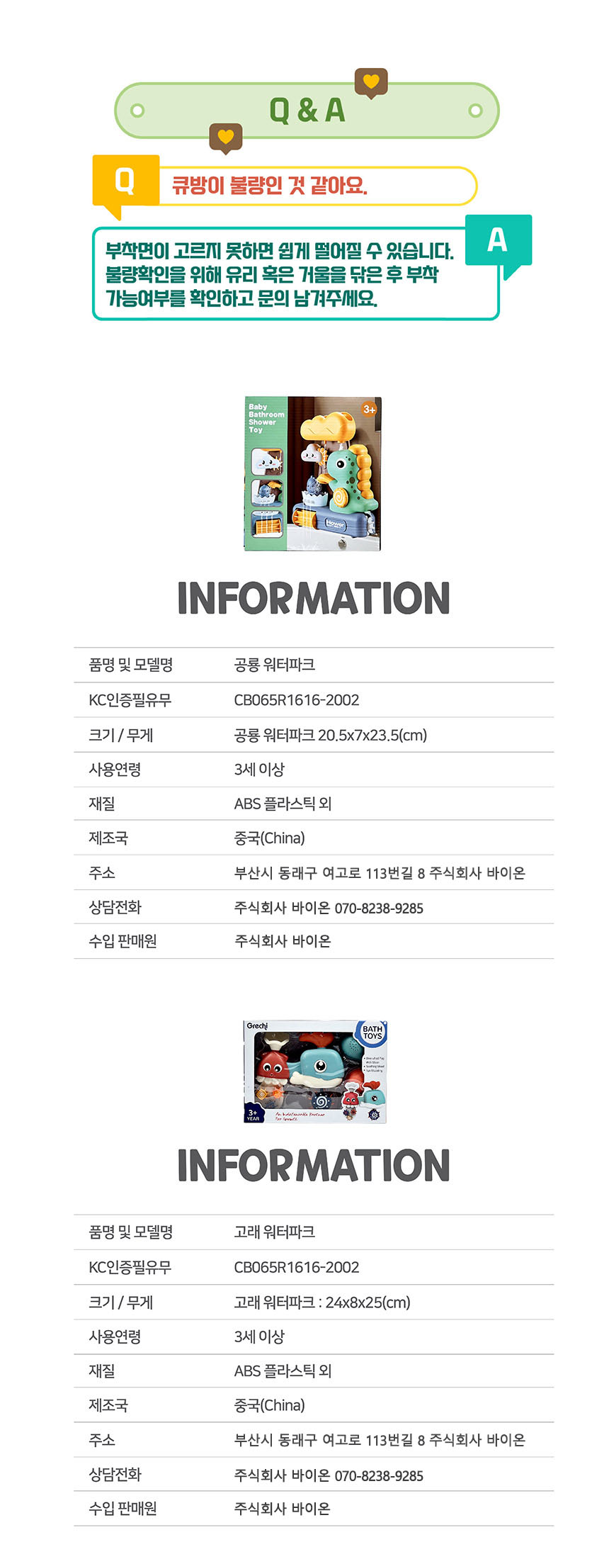 | 상품정보제공고시 | 품명: 공룡 고래 물놀이 목욕놀이용품 아기 유아 워터파크 장난감 모델명: TS13333909 제조자(수입자): 바이온 제조국: 대한민국 A/S 책임자와 전화번호: 상세페이지 참조 |