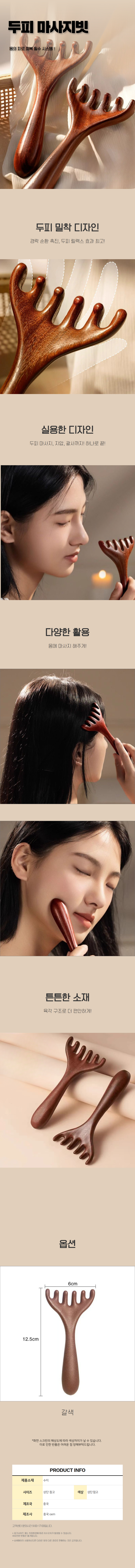 | 상품정보제공고시 | 품명: 두피 마사지기 괄사빗 마사지빗 머리 지압 안마빗 모델명: TS14535525 제조자(수입자): 중국 OEM 제조국: 대한민국 A/S 책임자와 전화번호: 상세페이지 참조 |