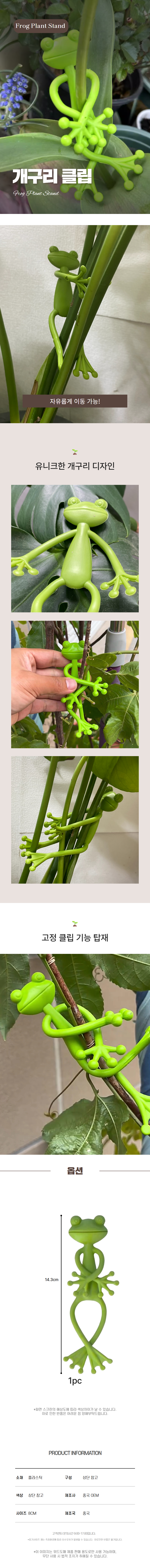 | 상품정보제공고시 | 품명: 화초 고정집게 원예 개구리 식물클립 화분타이 다용도 모델명: TS14556634 제조자(수입자): 중국 OEM 제조국: 대한민국 A/S 책임자와 전화번호: 상세페이지 참조 |