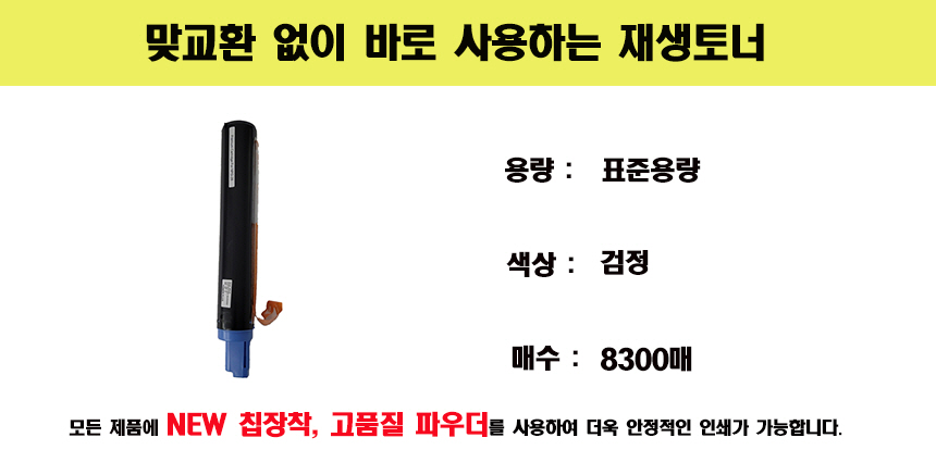 | 상품정보제공고시 | 품명: IR 311 재생토너 검정 8300매 모델명: TS13955647 제조자(수입자): ZPIMAGE 제조국: 대한민국 A/S 책임자와 전화번호: 상세페이지 참조 |