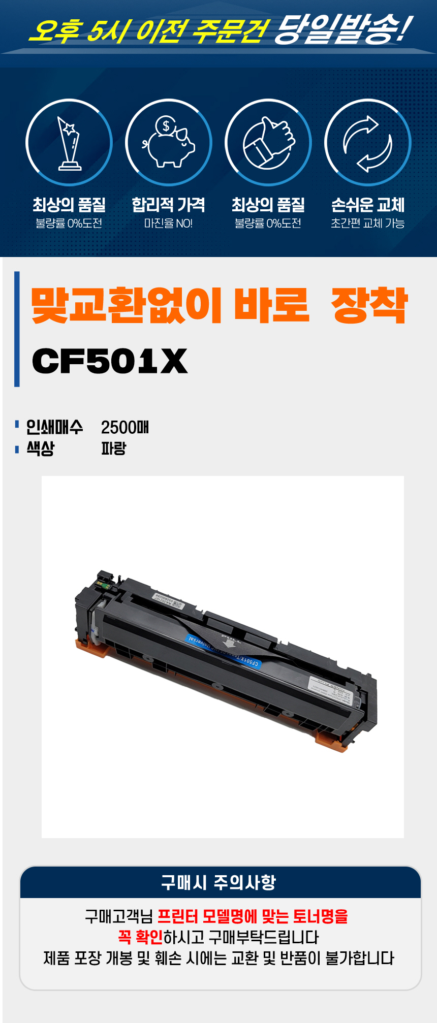 | 사용상 주의사항 | 제품을 교체,제거할 때 내용물의 누출에 주의하십시오. 내용물 누출시 분진,미스트,증기의 흡입 또는 피부 접촉에 주의하십시오. 가정용 진공청소기로 토너를 청소하지 말고, 젖은 천으로 닦아내십시오. |