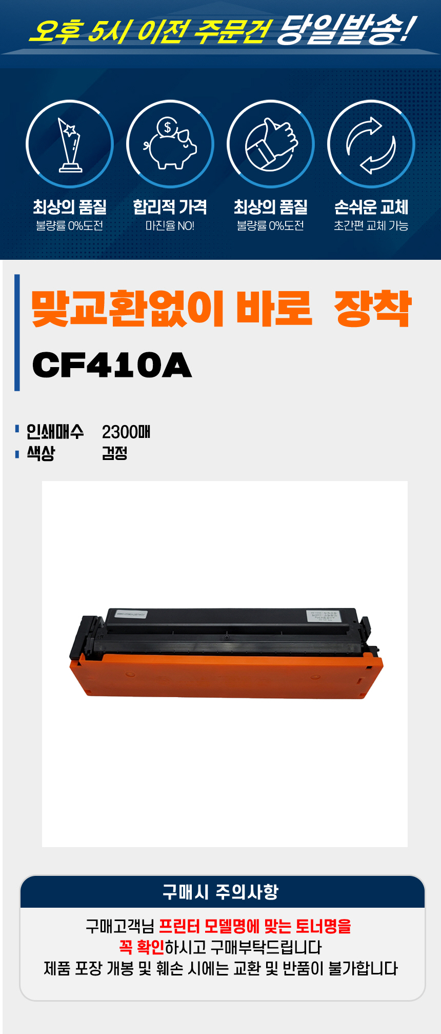 | 사용상 주의사항 | 제품을 교체,제거할 때 내용물의 누출에 주의하십시오. 내용물 누출시 분진,미스트,증기의 흡입 또는 피부 접촉에 주의하십시오. 가정용 진공청소기로 토너를 청소하지 말고, 젖은 천으로 닦아내십시오. |