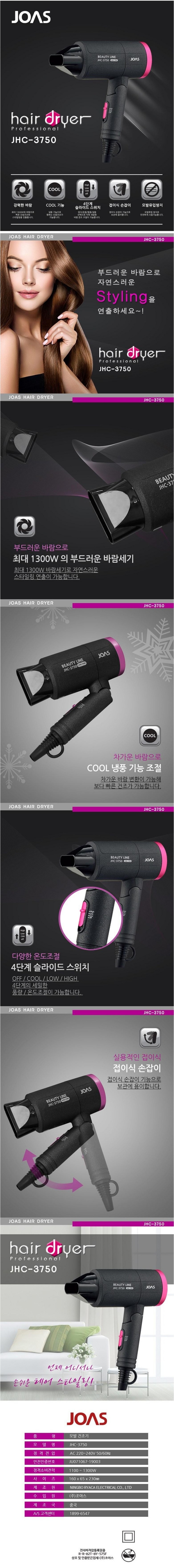 | 상품정보제공고시 | 품명: 조아스 접이식 헤어 드라이기 JHC-3750 모델명: TS13450301 제조자(수입자): 상세이미지참조 제조국: 대한민국 A/S 책임자와 전화번호: 상세페이지 참조 |