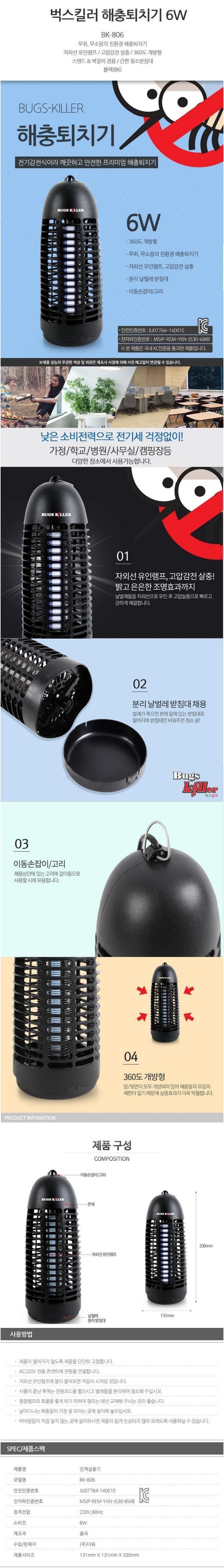 | 상품정보제공고시 | 품명: 버그킬러 해충 벌레 퇴치기 모기퇴치기 BK-806 모델명: TS13450817 제조자(수입자): 상세이미지참조 제조국: 대한민국 A/S 책임자와 전화번호: 상세페이지 참조 |
