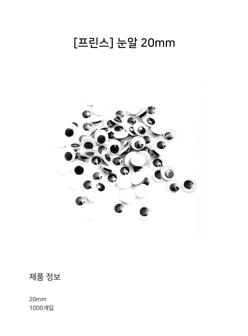 | 상품정보제공고시 | 품명: 프린스 눈알 20mm (1000개입) / 132438 모델명: TS13456315 제조자(수입자): 상세이미지참조 제조국: 대한민국 A/S 책임자와 전화번호: 상세페이지 참조 |