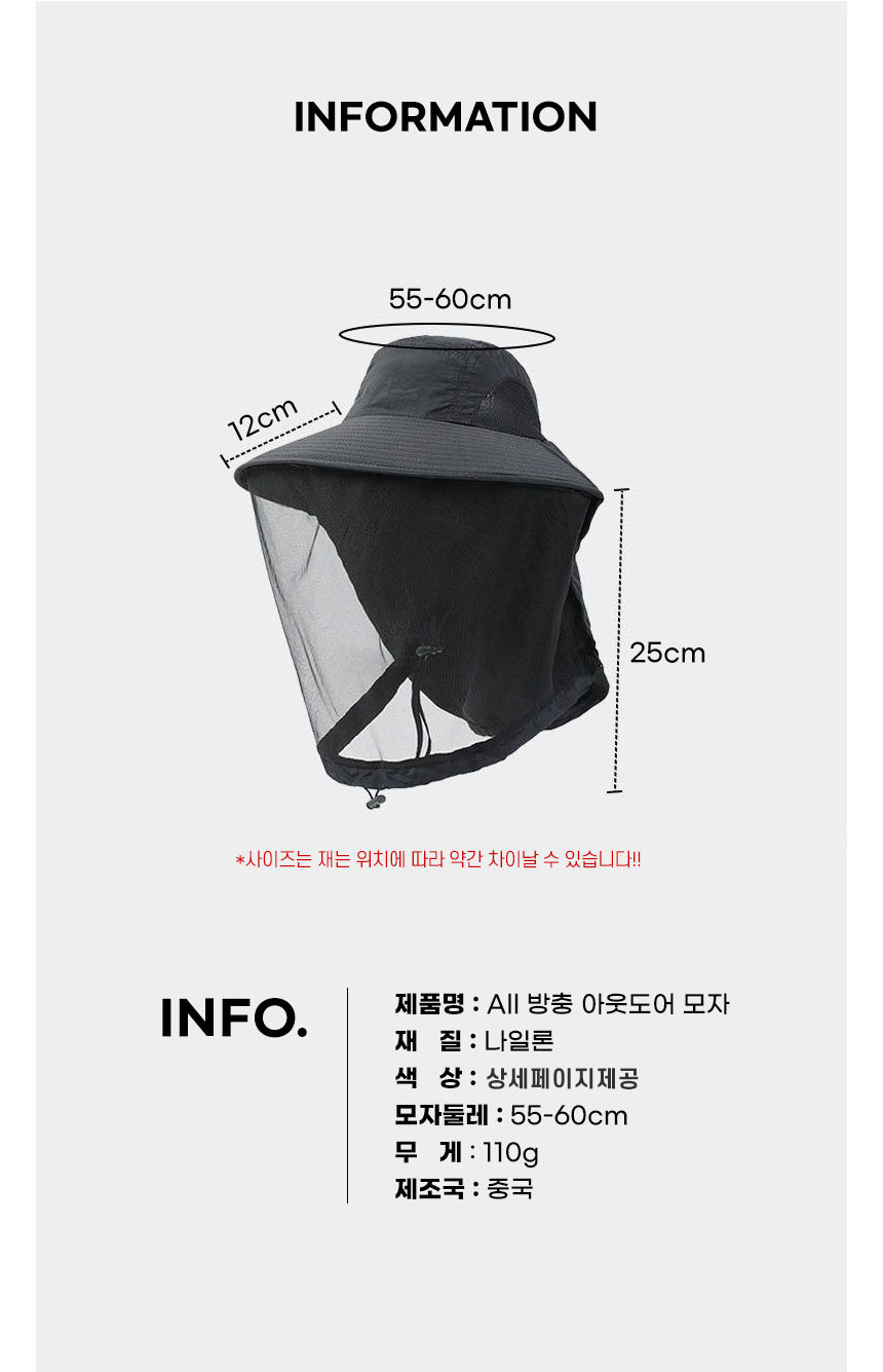 | 상품정보제공고시 | 품명: LW 올커버 방충 아웃도어 모자 자외선차단 벌레차단 캠핑 낚시 등산 챙모자 모델명: TS14471617 제조자(수입자): 아크 제조국: 대한민국 A/S 책임자와 전화번호: 상세페이지 참조 |