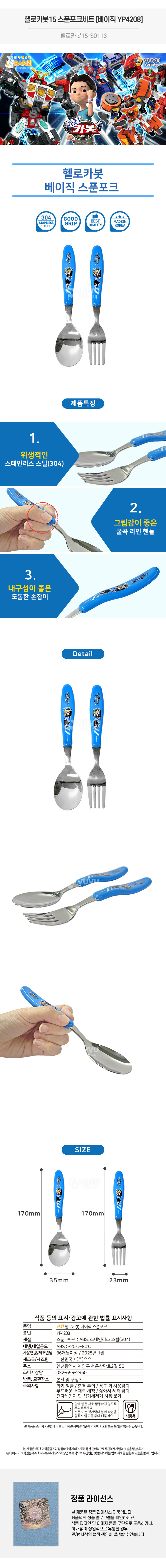 | 상품정보제공고시 | 품명: 헬로카봇15 베이직 스푼포크 세트 11500 YP4208 모델명: TS14339735 제조자(수입자): 유유 제조국: 대한민국 A/S 책임자와 전화번호: 상세페이지 참조 |