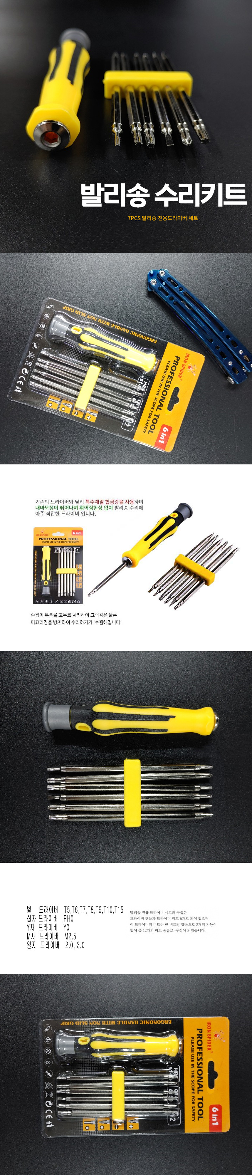 | 상품정보제공고시 | 품명: 6IN1 발리송 수리 7PCS 정밀드라이버세트 모델명: TS14104163 제조자(수입자): etc 제조국: 대한민국 A/S 책임자와 전화번호: 상세페이지 참조 |