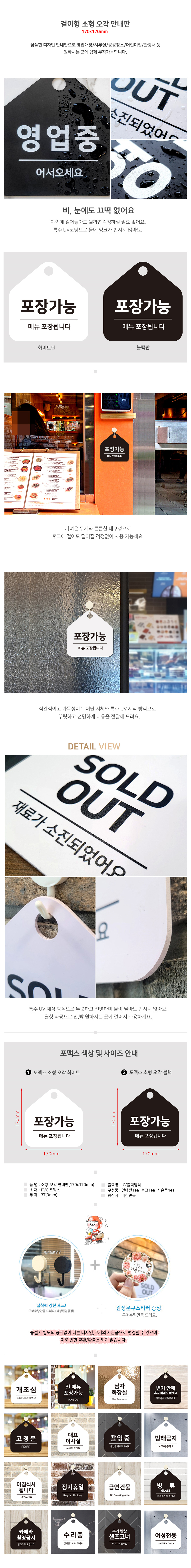 | 상품정보제공고시 | 품명: 포장가능 걸이형 소형 오각안내판 17x17cm 모델명: TS14205063 제조자(수입자): JJDECO 제조국: 대한민국 A/S 책임자와 전화번호: 상세페이지 참조 |
