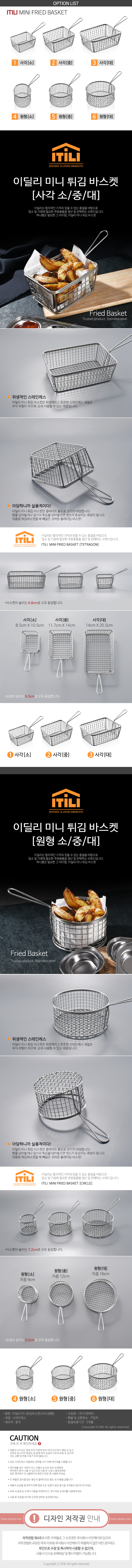 | 상품정보제공고시 | 품명: 미니 튀김 바스켓(대) 모델명: TS13750355 제조자(수입자): YH유통(협력업체) 제조국: 대한민국 A/S 책임자와 전화번호: 상세페이지 참조 |