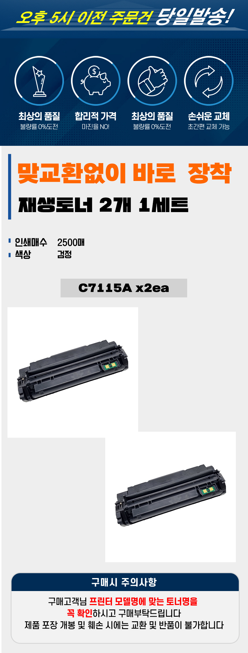 | 사용상 주의사항 | 제품을 교체,제거할 때 내용물의 누출에 주의하십시오. 내용물 누출시 분진,미스트,증기의 흡입 또는 피부 접촉에 주의하십시오. 가정용 진공청소기로 토너를 청소하지 말고, 젖은 천으로 닦아내십시오. |