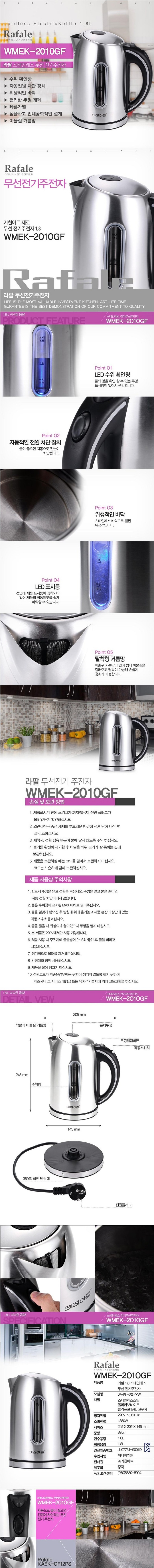 | 상품정보제공고시 | 품명: 키친아트 라팔 스텐1.8L 무선 전기주전자 WMEK-2010GF 모델명: TS13450201 제조자(수입자): 상세이미지참조 제조국: 대한민국 A/S 책임자와 전화번호: 상세페이지 참조 |
