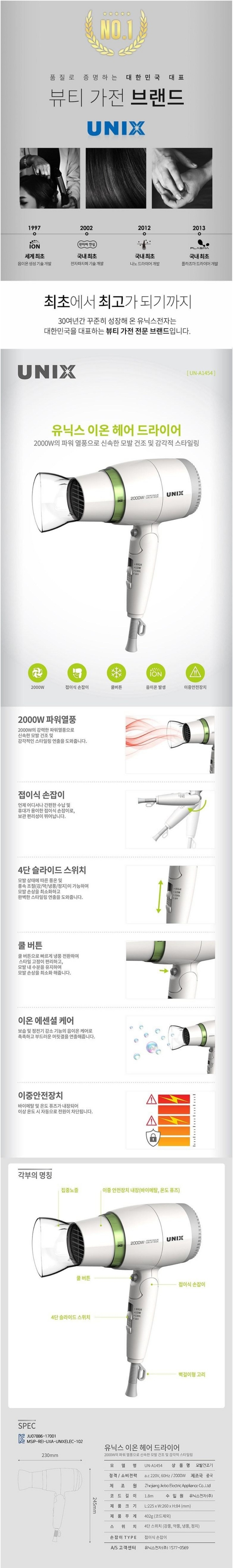 | 상품정보제공고시 | 품명: 유닉스 접이식 이온 헤어드라이어 2000w UN-A1454 모델명: TS13450359 제조자(수입자): 상세이미지참조 제조국: 대한민국 A/S 책임자와 전화번호: 상세페이지 참조 |