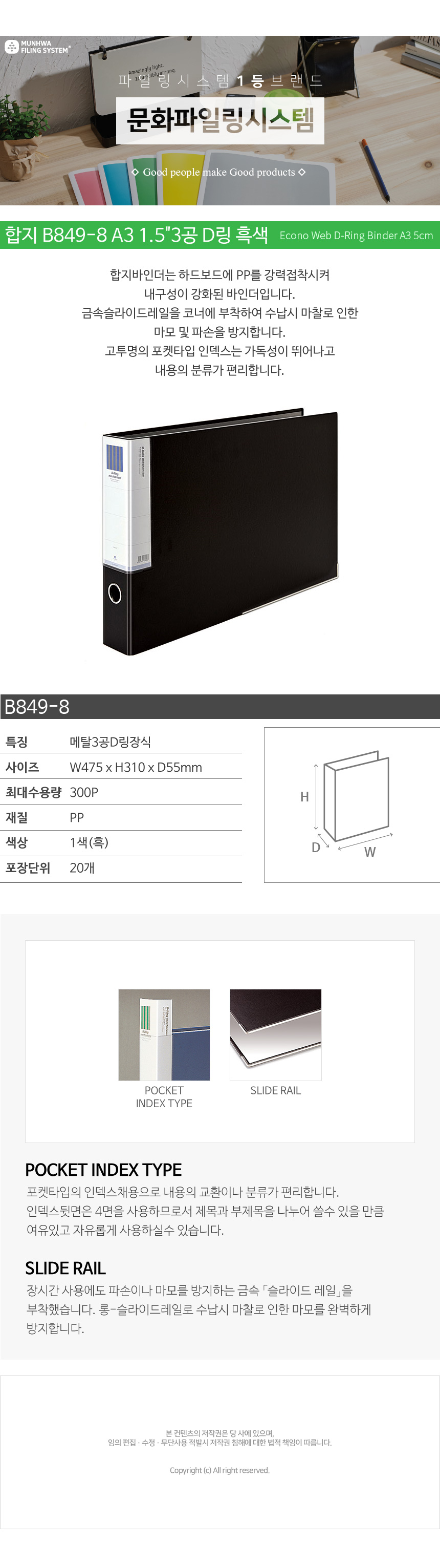 | 상품정보제공고시 | 품명: 문화 합지 B849-8 A3합지 1.5인치 3공D링 흑색 / A3 / 48150 모델명: TS13458755 제조자(수입자): 상세이미지참조 제조국: 대한민국 A/S 책임자와 전화번호: 상세페이지 참조 |