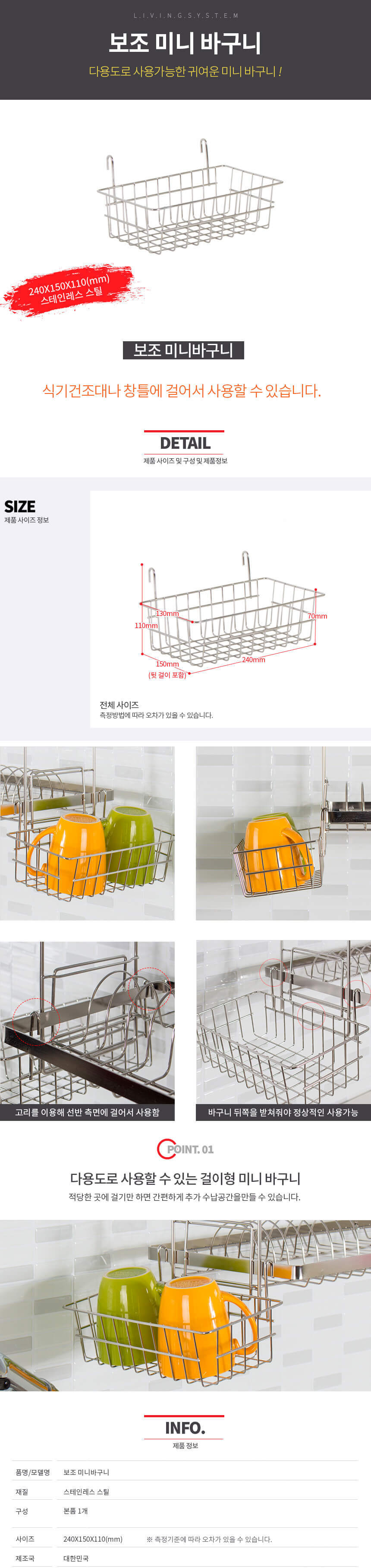 | 상품정보제공고시 | 품명: 홈인더스 다용도 미니바구니 스테인리스 컵선반 창틀선반 모델명: TS14281664 제조자(수입자): 홈인더스 제조국: 대한민국 A/S 책임자와 전화번호: 상세페이지 참조 |