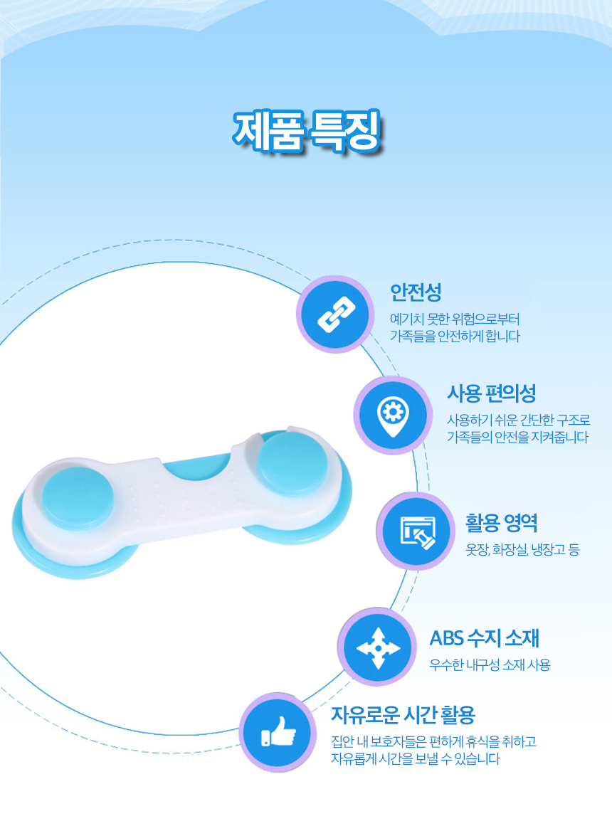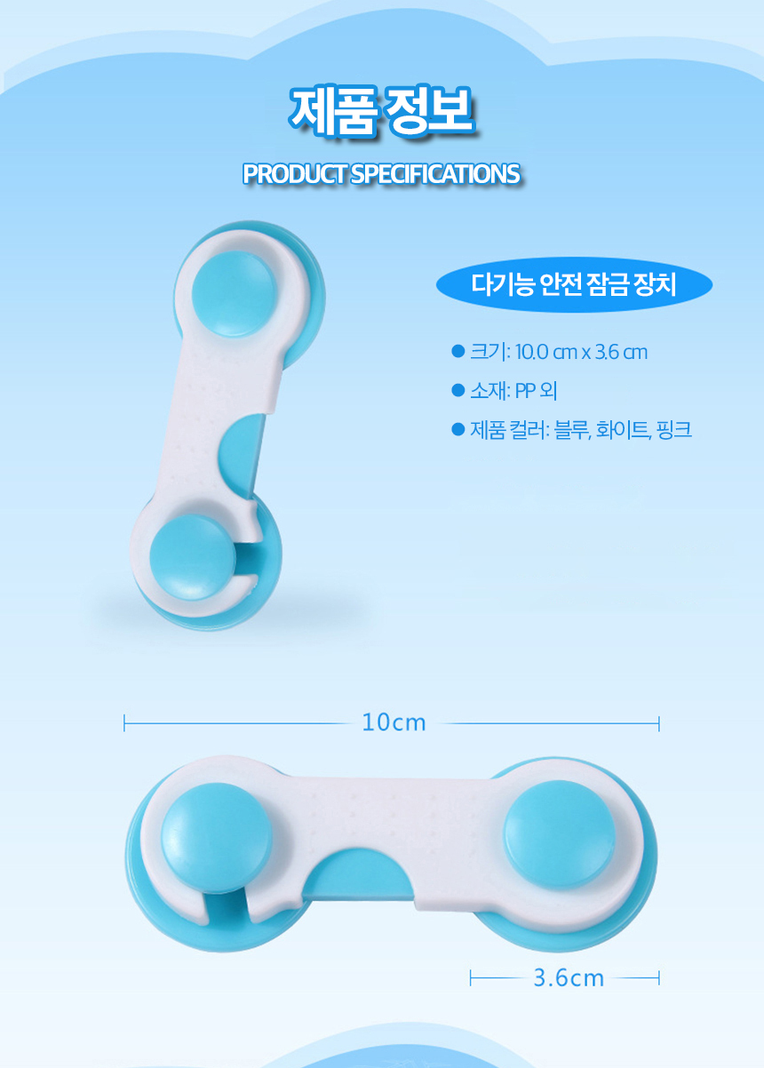 | 상품정보제공고시 | 품명: 서랍잠금장치 아기문열림방지 서랍 캐비넷 열림방지 모델명: TS14255697 제조자(수입자): 와이케이상사협력업체 제조국: 대한민국 A/S 책임자와 전화번호: 상세페이지 참조 |