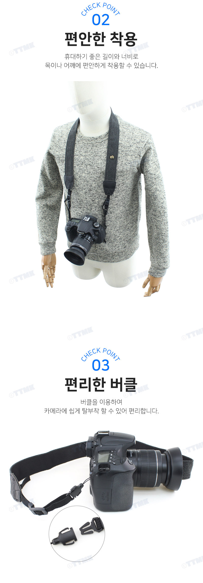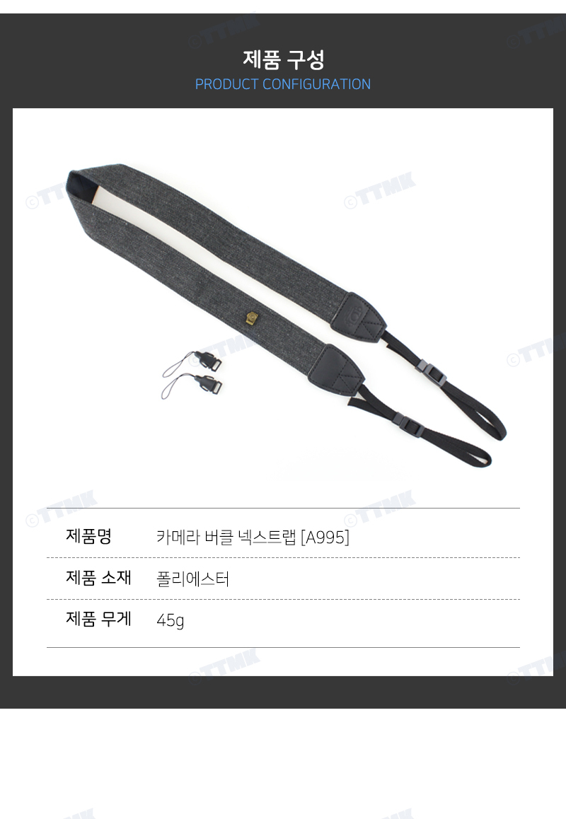 | 상품정보제공고시 | 품명: DSLR 카메라 미러리스 넥 스트랩 사진 포토 촬영용품 모델명: TS13782899 제조자(수입자): TTMK 제조국: 대한민국 A/S 책임자와 전화번호: 상세페이지 참조 |
