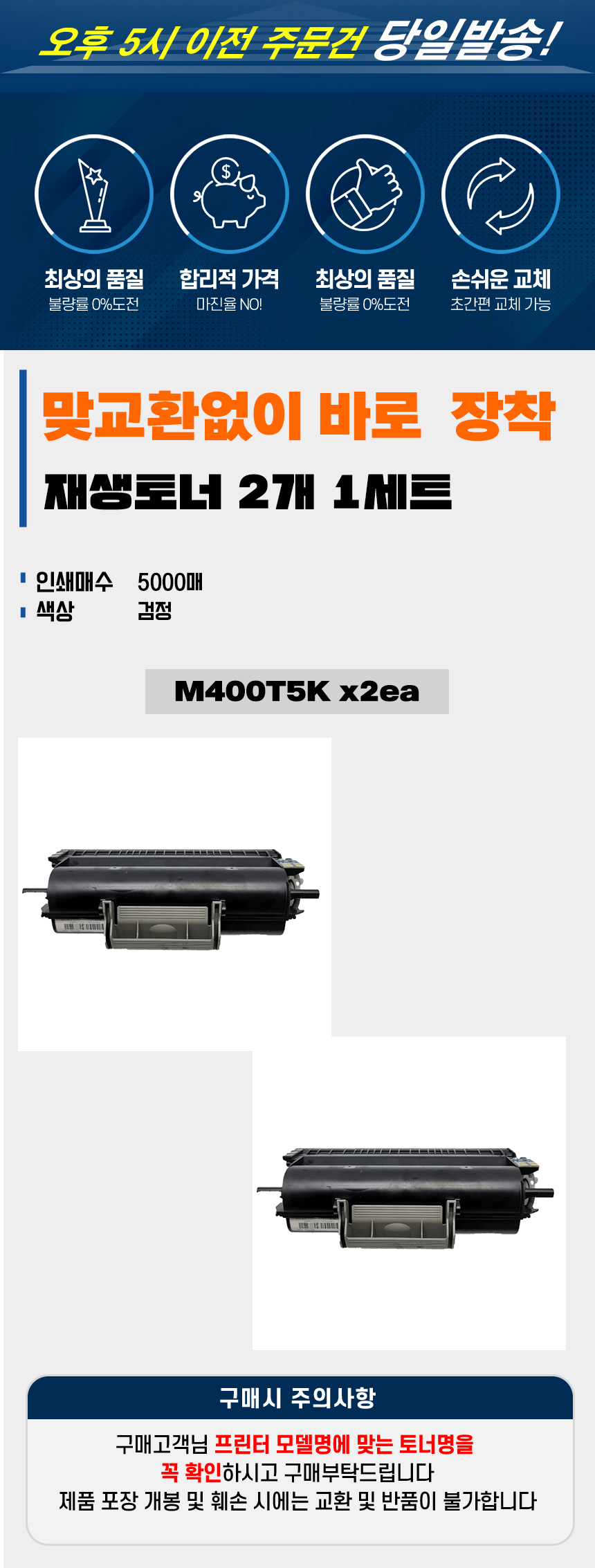 | 상품정보제공고시 | 품명: TTSM사 신도리코 재생토너 M400S 표준용량 검정 2개 모델명: TS13387281 제조자(수입자): 잉리트 제조국: 대한민국 A/S 책임자와 전화번호: 상세페이지 참조 |