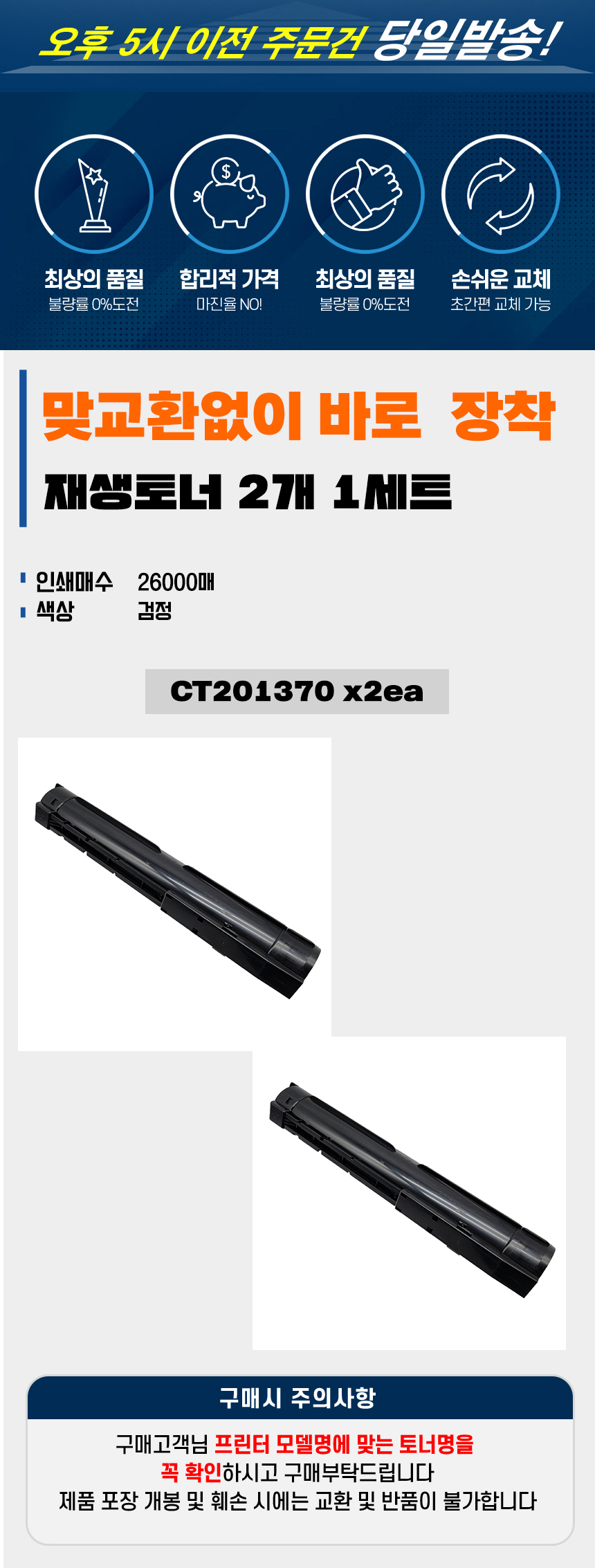 | 사용상 주의사항 | 제품을 교체,제거할 때 내용물의 누출에 주의하십시오. 내용물 누출시 분진,미스트,증기의 흡입 또는 피부 접촉에 주의하십시오. 가정용 진공청소기로 토너를 청소하지 말고, 젖은 천으로 닦아내십시오. |