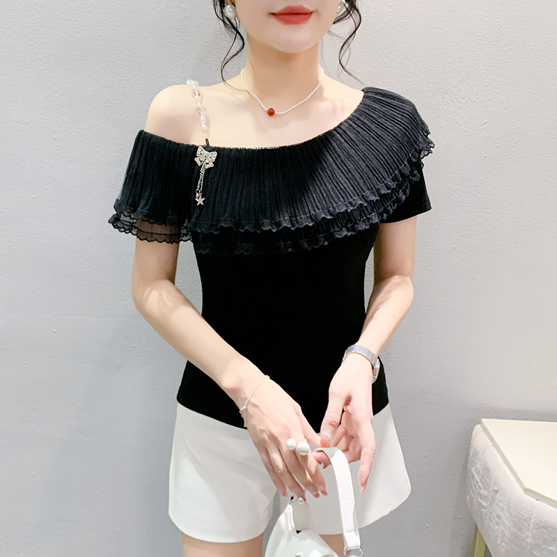 한정수량 MD추천 2024 여름 러플 사선넥 체인 티셔츠