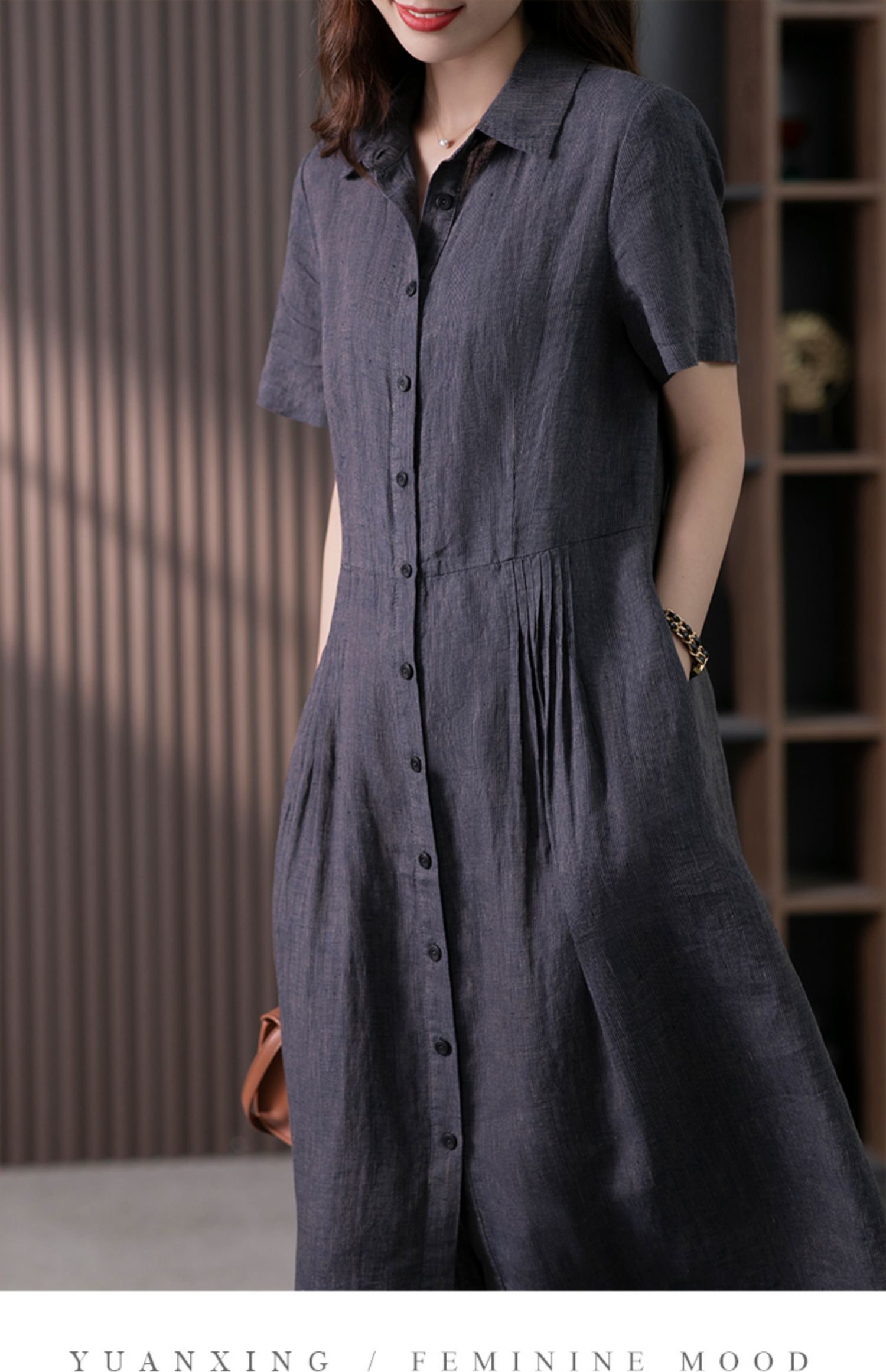 2023 여름 신상 리넨 고급 감성 모던 소장각 셔츠 원피스