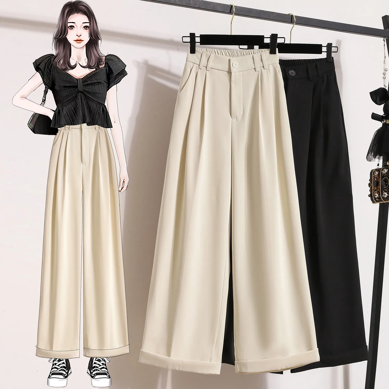 빅사이즈 아이스실크 하이웨스트 와이드 9부 팬츠 여름시즌 초특가