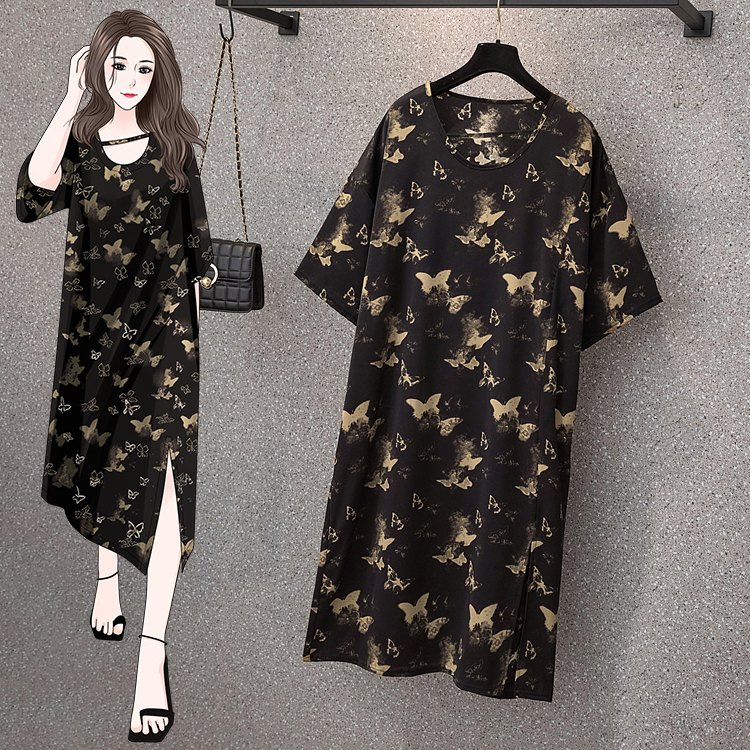 여름신상 대형사이즈 복고 감성 나비프린트 루즈핏 원피스